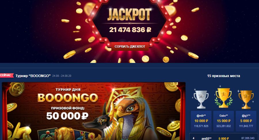 Лобби игрового зала информирует онлайн о ситуации с выигрышами на слот машинах в специальном окне и предлагает участие в специальных турнирах, доступное любому игроку. Стандартное меню разделено на следующие категории: