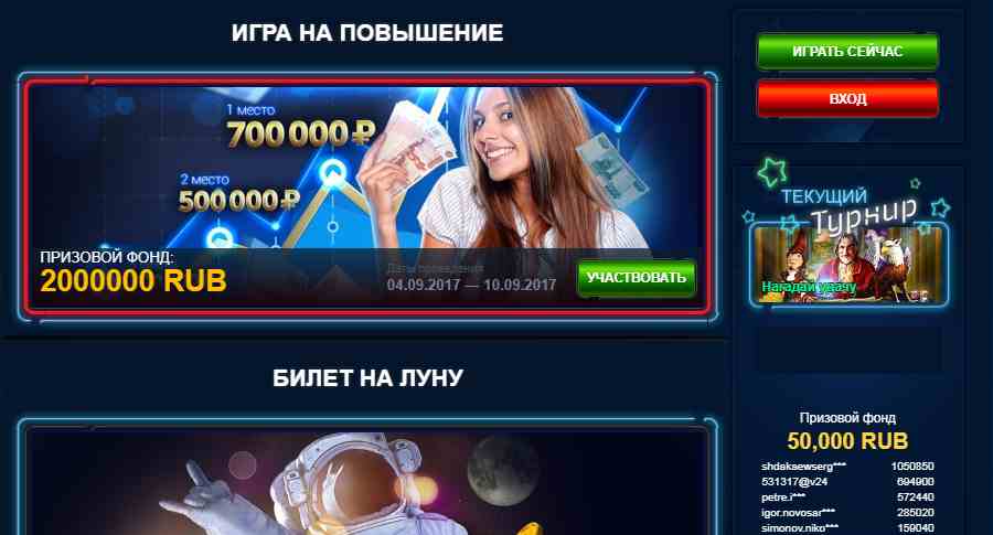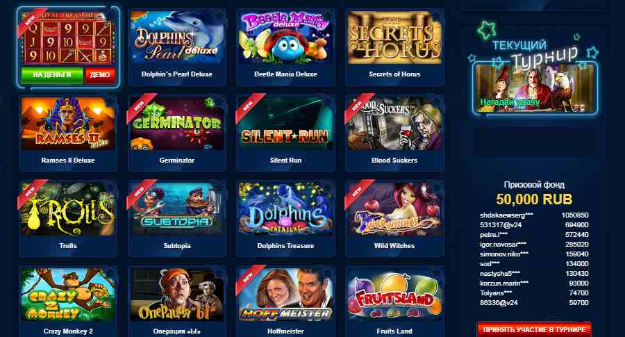 - Игры:Игровые автоматы, рулетки, блекджек, баккара