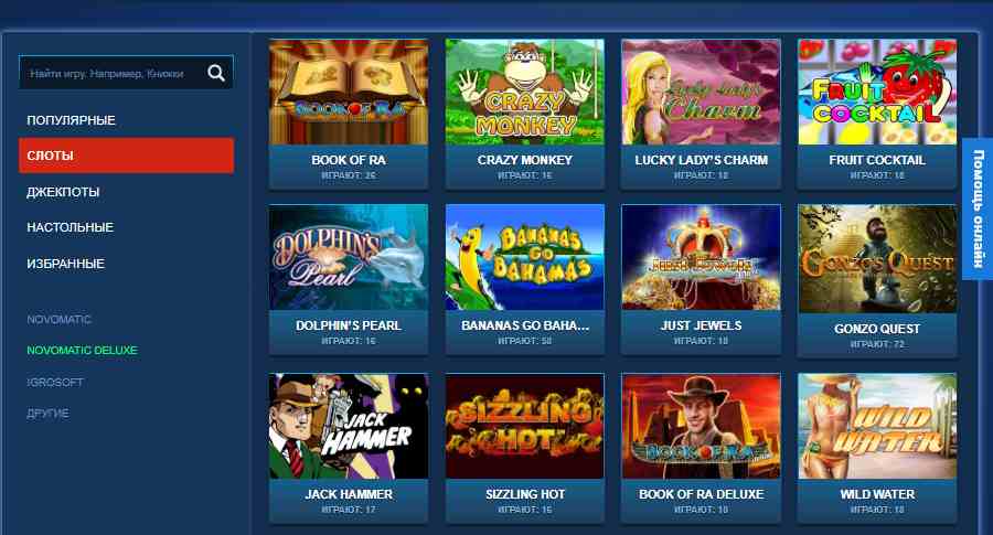 - Novomatik Deluxe. Девелопер Novomatik представляет новые, отличающиеся улучшенным качеством и функционалом автоматы под постфиксом Deluxe. Слоты с этим названием предлагают новые возможности за счет увеличения бонусов и призов. Всем желающим предоставляется возможность протестировать легендарные аппараты Book of Ra Deluxe. Colombus Deluxe, Dolphin’s Pearl Deluxe в новом качестве.