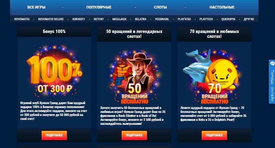 Больше всего слотов, которые были популярны еще в начале 2000х годов в оффлайн клубах сети Vulkan, так как в Гранде играют люди с теми же предпочтениями.