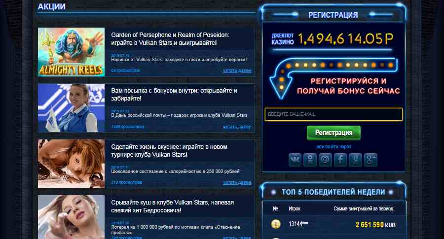 Это только краткое описание всех систем поощрения постоянных гостей портала. Для клиентов, играющих на скачанной версии казино Вулкан Старс они абсолютно идентичны. Администрация сайта всегда будет держать вас в курсе событий, новинок и турнирных предложений – каждое обновление обязательно рассылается на почтовые ящики любителей азарта, указанные при регистрации.