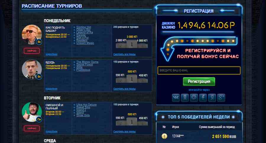 Также для всех игроков, в том числе тех, кто скачал программу, регулярно проводятся тематические турниры. Тематика у них разная, но суть одна – щедрый призовой фонд, который поделят между собой 3 самых активных гемблера. Для участия необходимо сыграть в указанных автоматах определенное количество раундов с указанной минимальной ставкой. После достижения необходимого минимума вы автоматически становитесь участником турнира. А дальше дело за вами – чем больше игр сыграете, тем больше шансов на победу. Цель простая – переплюнуть по количеству сыгранных партий других гостей Вулкан Старс.